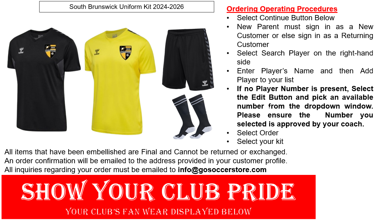Welcome to the South Brunswick Soccer Club Store