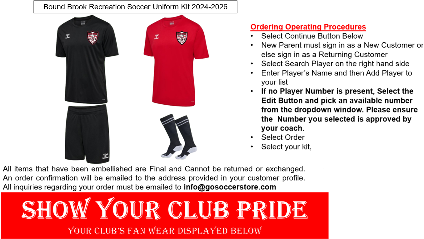 Welcome to the Bound Brook Recreation Soccer Store